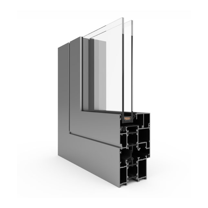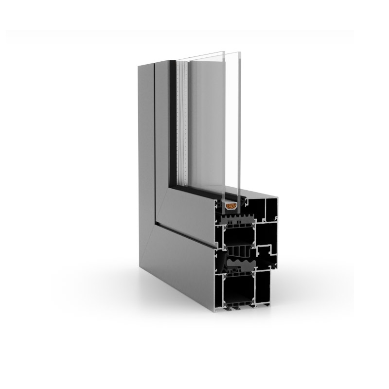 Klasikinė aliuminio sistema su termoizoliaciniu intarpu. Tinka gyvenamiesiems ir komerciniams objektams, kai reikalingas patikimas sprendimas langams ir durims.